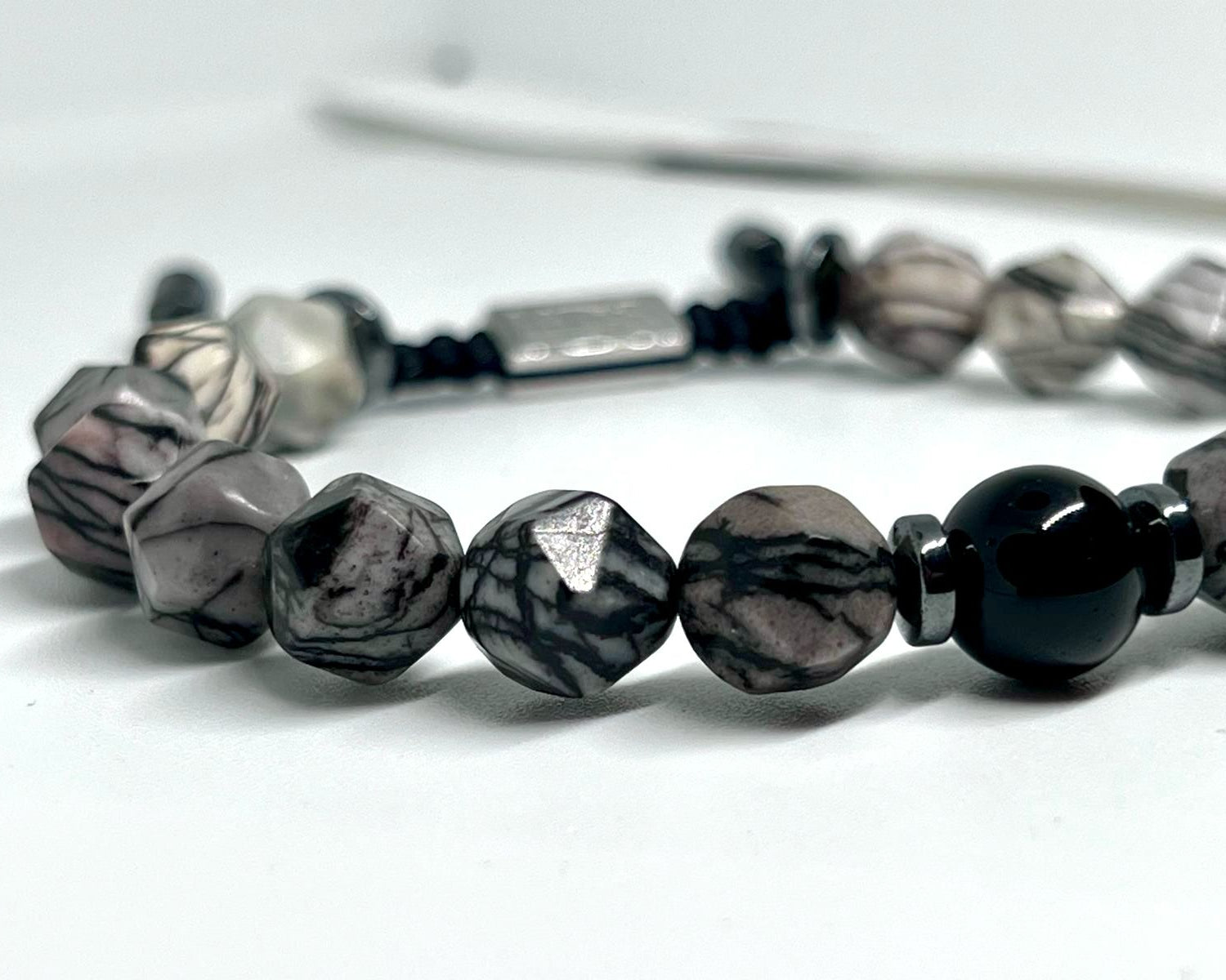 MAGNUS mezcla vetas naturales con formas irregulares que hacen de cada pieza algo único. El contraste con el centro oscuro crea un punto de fuerza que atrae sin esfuerzo. Diseñado para quien valora lo auténtico y no sigue patrones (piedra 8mm).