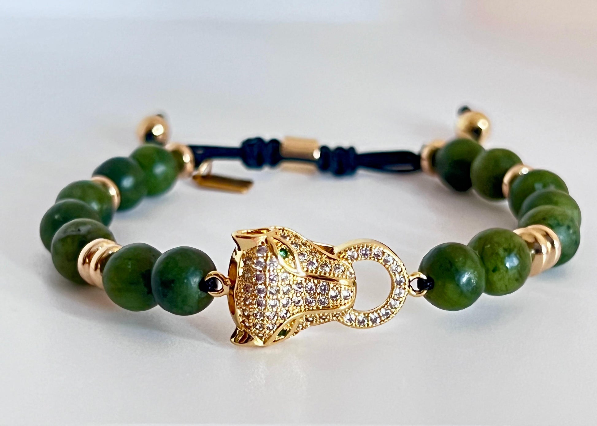 El dije presenta la silueta estilizada de un jaguar, meticulosamente trabajado en metal de alta calidad con un acabado pulido que realza cada línea y detalle.