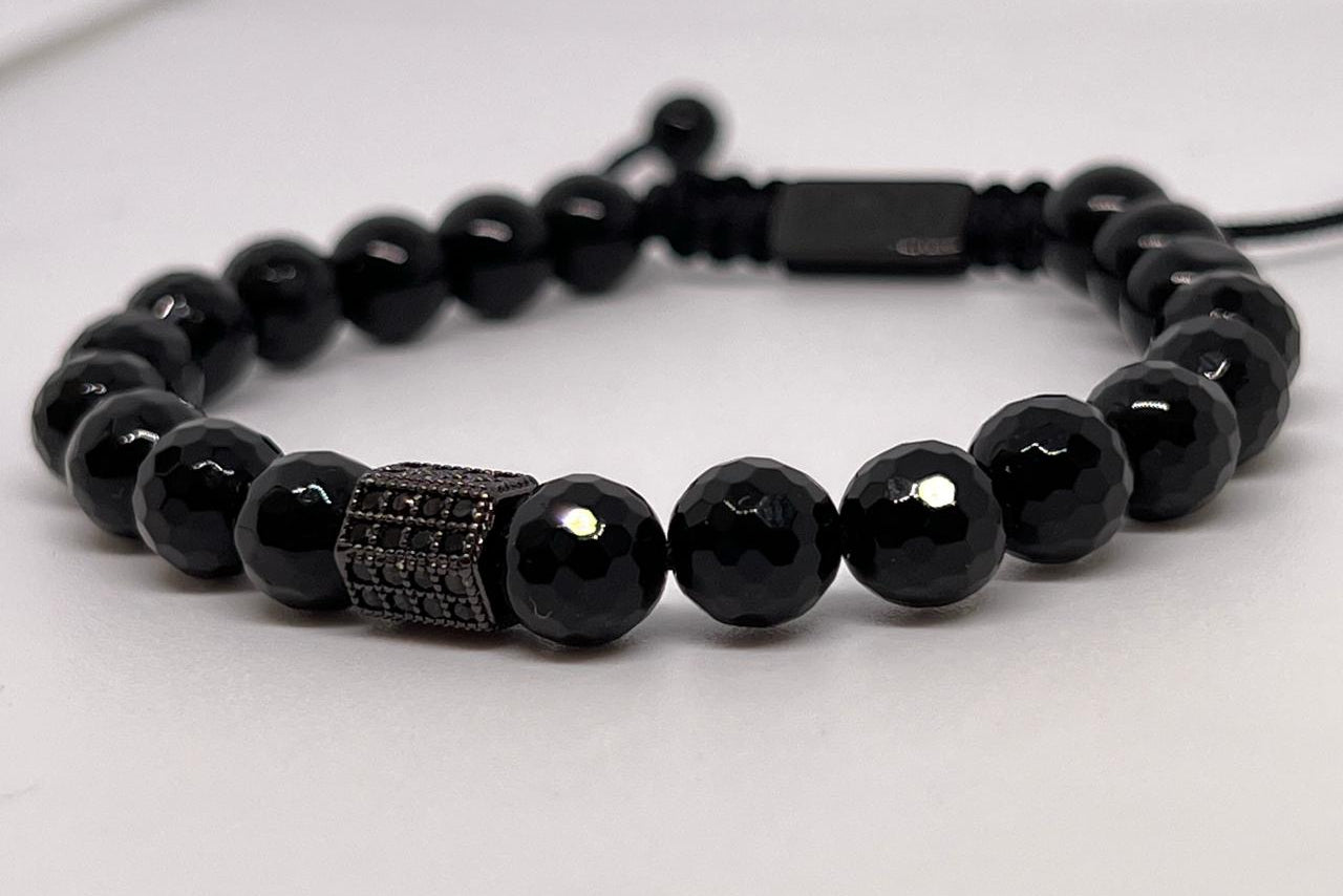 NIGHT GLINT combina ónix facetado que capta la luz en cada ángulo, con un dije de zirconia que marca el punto exacto de brillo. Un contraste preciso entre lo sobrio y lo que destaca.